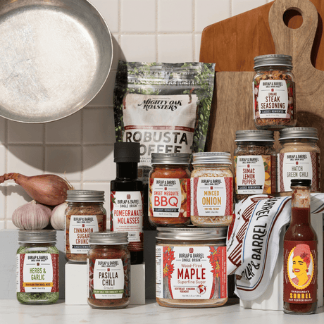 Every quarter, your loved one will open a box filled with 4 freshly harvested spices and a collaboration product—early releases, limited harvests and one-of-a-kind pantry staples made with other food companies that we love—plus a hand-illustrated recipe booklet and a free-jar code for their next adventure in cooking.
