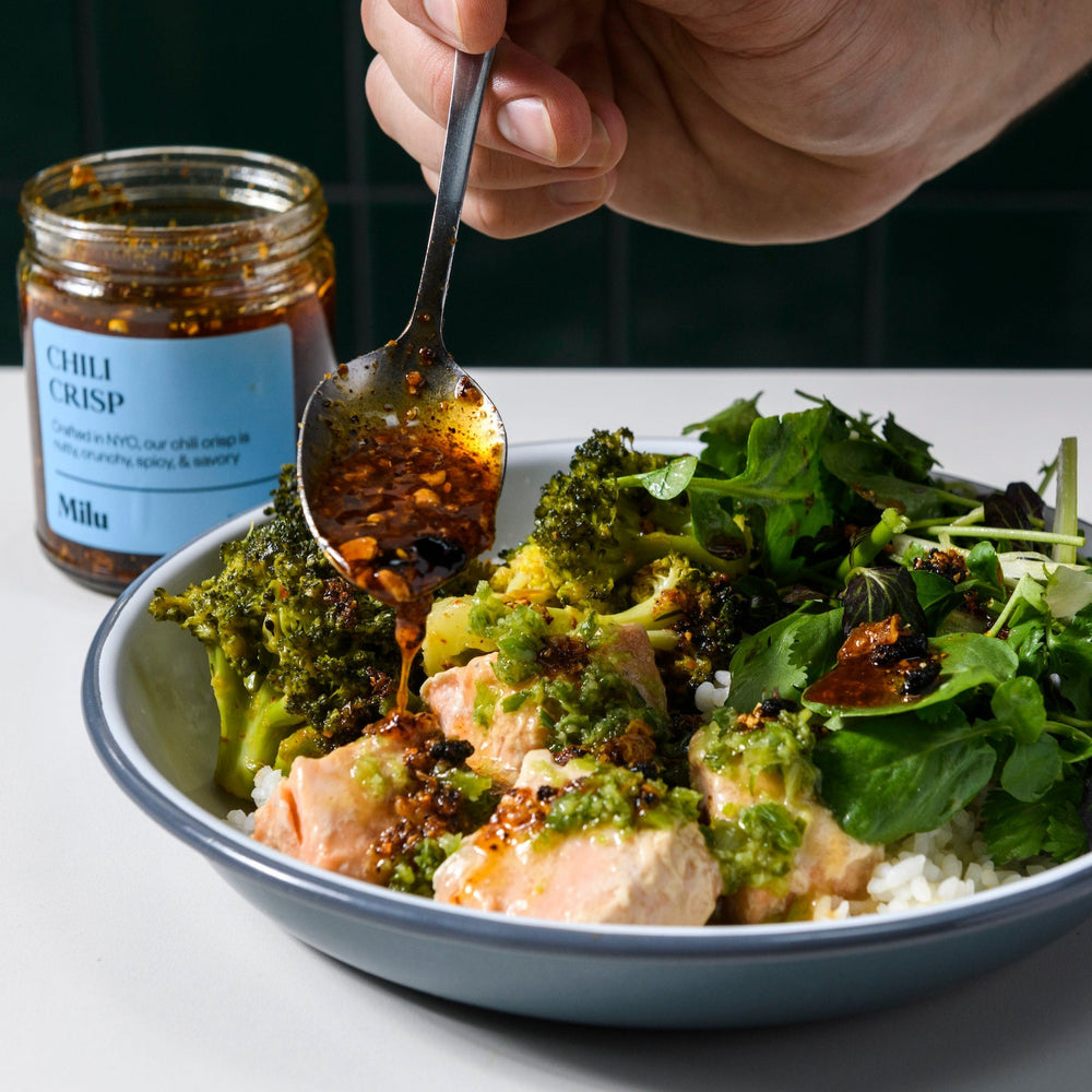 Savory, slightly spicy chili crisp made in collaboration with Milu.