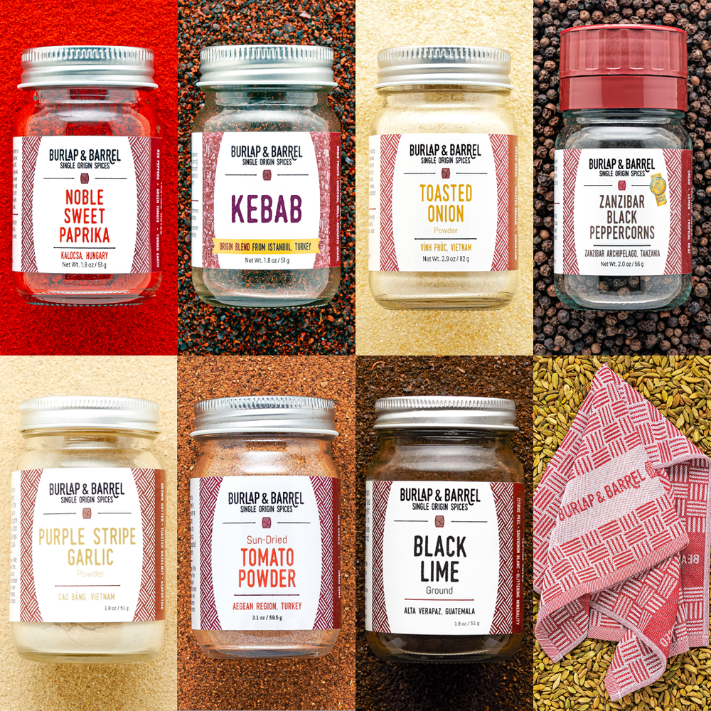 Both collections are packed in a beautiful box and ships for free within the US. The 7-spice set comes with a free pair of our woven kitchen towels.