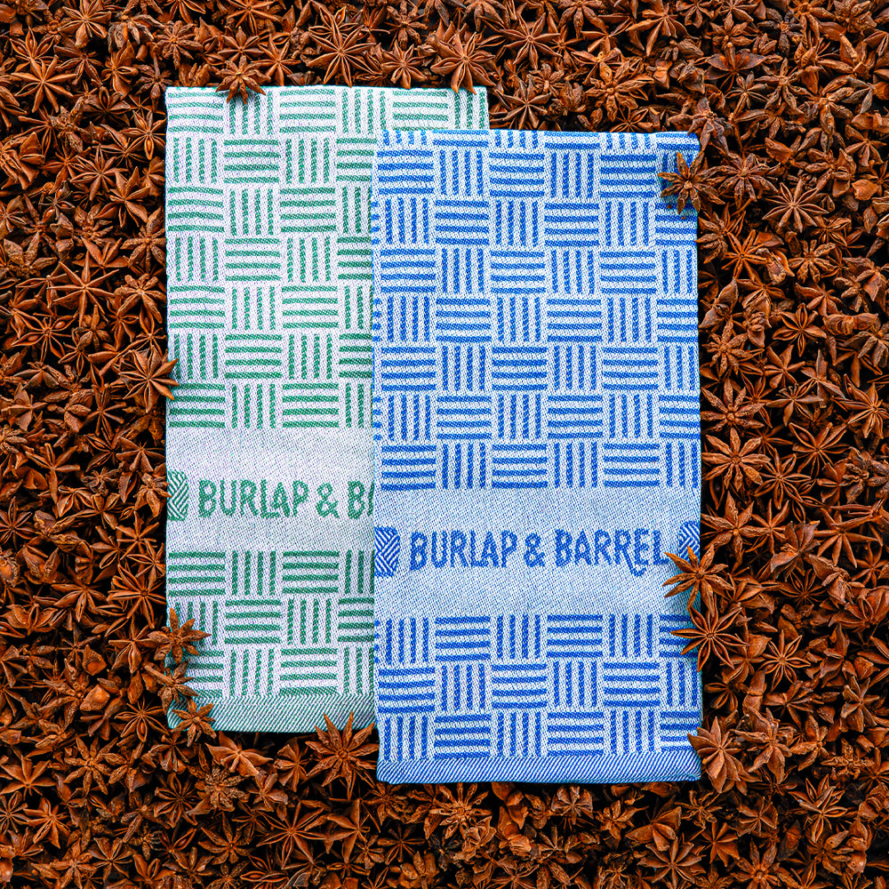 Made from 100% woven cotton, they’re built for utility: drying dishes, pulling a hot pan from the oven, cleaning up spills or protecting your table from something fresh out of the skillet. Finished with a woven Burlap & Barrel logo band and a loop tag for easy hanging.