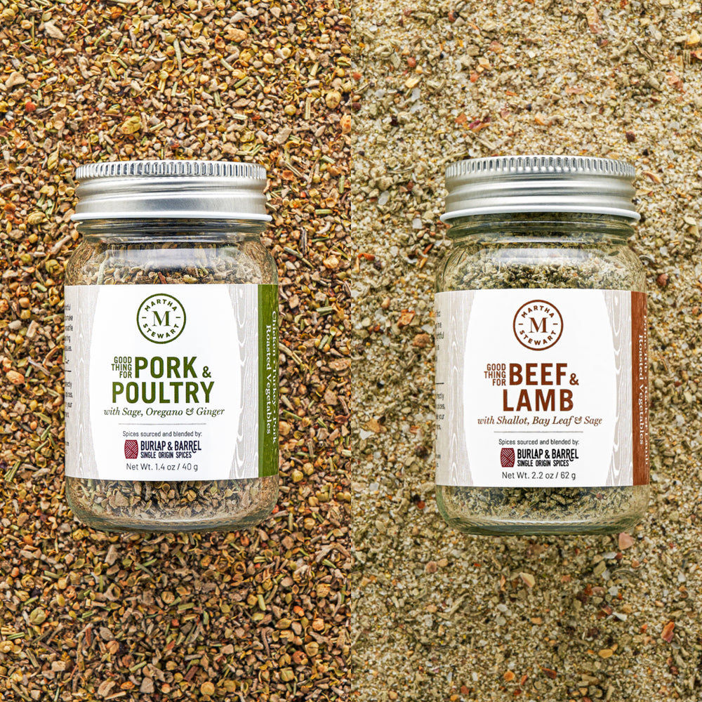 Pork & Poultry is Martha’s signature herb-forward seasoning, built on sage, rosemary and oregano with warming ginger and a touch of sea salt. It’s the blend she reaches for when roasting chicken or turkey, seasoning pork or building flavor into comforting classics like stuffing.