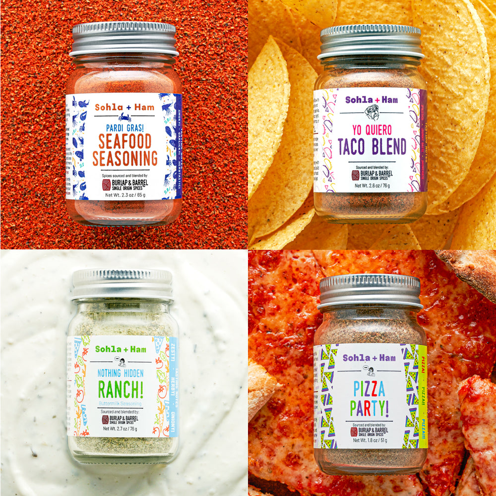“This XXXTREME blend will zap you back to the '90s with its earthy cumin and coriander, smoky mesquite and chipotle, and FLAMES from red jalapeño and hot paprika. Try it on ground meat for your next hard-shell taco night, in a pot of simmering beans, to season grilled shrimp, or anywhere you need a fiesta, stat!" -Sohla + Ham- Season ground beef, chicken or mushrooms for taco night