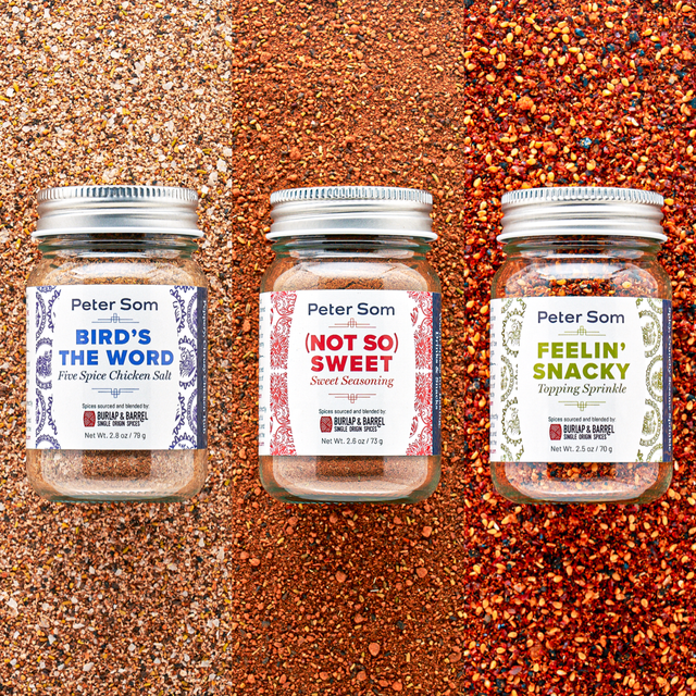 Peter says, “I’m super excited to partner with Burlap and Barrel for this collaboration. They’ve simply been a game-changer in the kitchen and have taken my cooking and baking to the next level. Each of these spice blends was inspired by the flavors I grew up with and still use to this day. Each blend is all about the balance of sweet and savory and the hits of flavor that ping pong around your mouth. The warming notes of Chinese five spice was the starting point, but from there I took things in a few different—and very delicious—directions.”