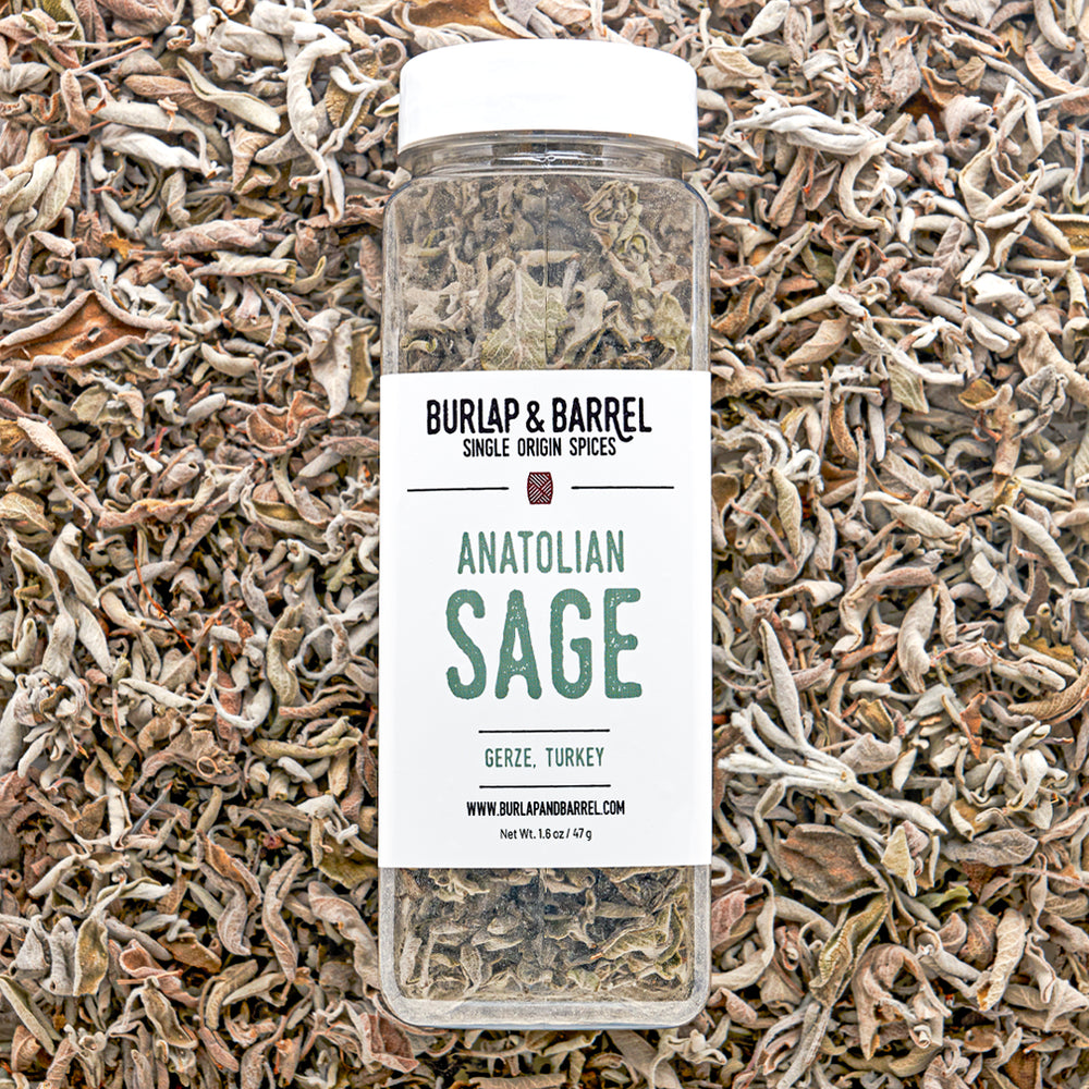 Our Anatolian Sage is grown in a small town in northern Turkey, along the Black Sea. These beautiful, delicate leaves boast a rich flavor that adds backbone and depth to long-cooked stews, gravies and roasted or grilled meats. Try infusing it in butter or oil to drizzle over roasted sweet potatoes!