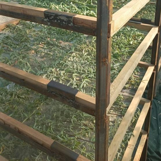 This sage is planted in February and March and harvested from August until October. After harvest, it is hung in bundles to air-dry, then carefully pulled off the stems.