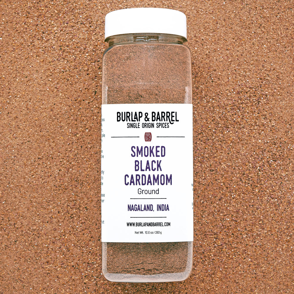 Our Smoked Black Cardamom is a complex spice beloved across South and Central Asia. A larger cousin of cardamom, these pods are pink and purple when fresh, and they turn black as they're smoked over an open fire. The flavor is more resinous and bold than that of its softer, sweeter cousins yellow or green cardamom, and it's at its best in dishes that cook for hours, so its flavor can soften and meld with the other spices (it pairs well with citrus).