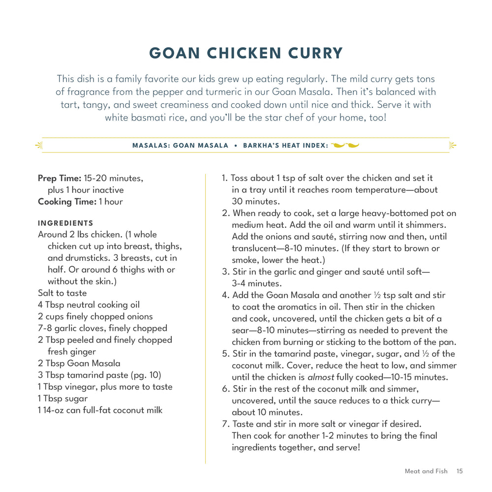 30+ Indian home-cooking recipes feat. our masalas, written by Barkha Cardoz.